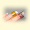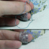 Used to provide flatness of stitches, provides the necessary freedom of floss to avoid gaps in thread showing canvas while embroidering with cross stitch or half-cross / Petit -Point on tapestry frame. Worn on the ring finger of the working (upper) arm.
